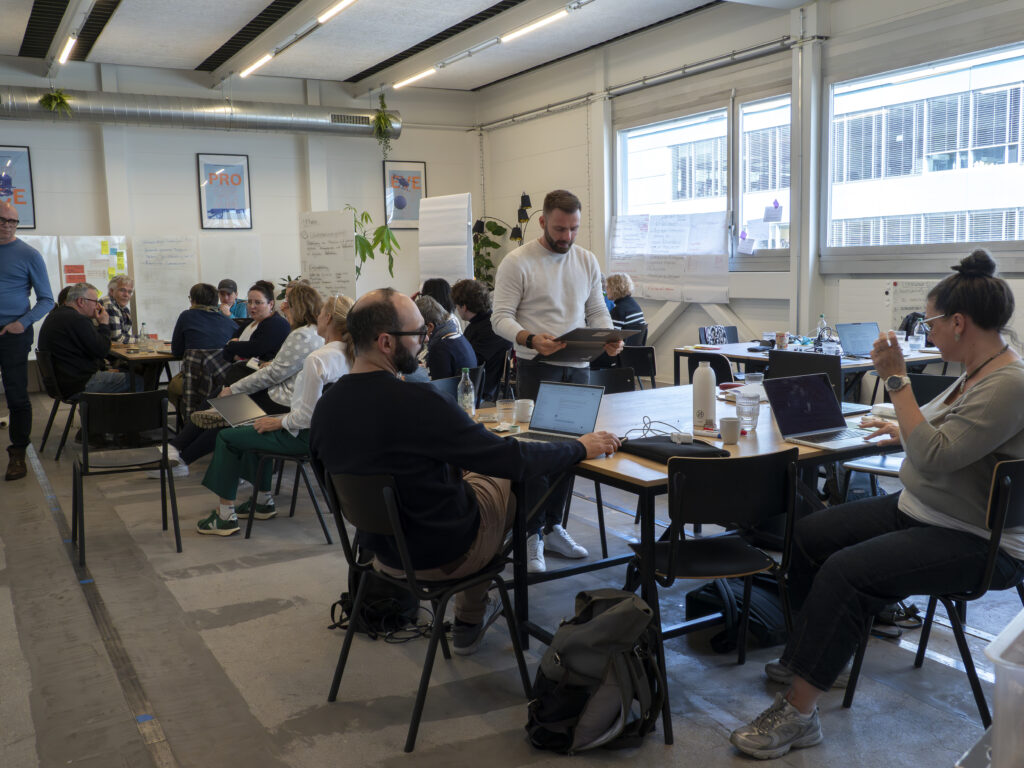 Atmosfera da start-up nei locali del Blueion a Zurigo: otto gruppi composti da cinque a otto persone hanno discusso, progettato, riso e gesticolato distribuiti in vari punti dei due piani dell’edificio. Di tanto in tanto qualcuno abbandonava il proprio gruppo per chiedere ai collaboratori della FSEA informazioni sulle possibilità di stampare o sui materiali  a disposizione – per poi scomparire nuovamente, in maniera quasi furtiva, nella frenesia generale.