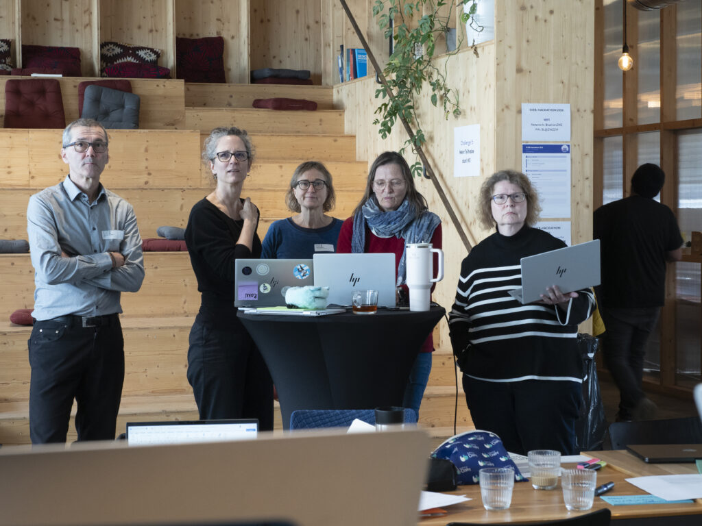 E proprio così era stato pensato, eppure l’impegno, l’autonomia e il ritmo con cui le persone partecipanti si sono messe al lavoro hanno sorpreso tutti. Le e i partecipanti hanno preso visibilmente sul serio il loro compito: trovare una soluzione basata sull’IA per risolvere una specifica sfida, delle tre tra le quali si poteva scegliere. Ogni sfida si focalizzava su un aspetto peculiare, come ad esempio la sostenibilità, la partecipazione o i futuri.